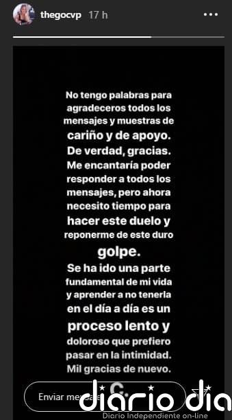 Día después, su prima ha querido publicar un sincero mensaje en Instagram donde agradece todas las muestras de cariño recibidas durante estos días: «No tengo palabras para agradeceros todos los mensajes y muestras de cariño y de apoyo. De verdad, gracias. Me encantaría poder responde a todos los mensajes, pero ahora necesito tiempo para hacer este duelo y reponerme de este duro golpe».