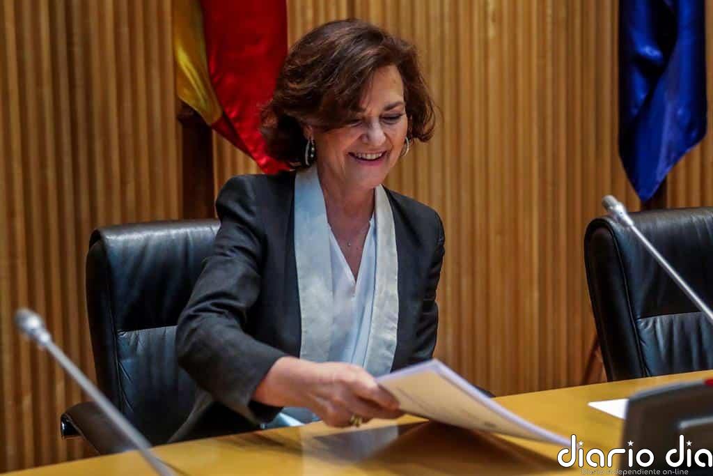 La vicepresidenta primera del Gobierno, Carmen Calvo, ha asegurado este martes que el Gobiero se apoyará en los ayuntamientos, los colegios y los campamentos de verano para poner solución a los problemas de conciliación que están viviendo algunas familias, especialmente las monomarentales, durante el proceso de desescalada de la crisis del Covid19.