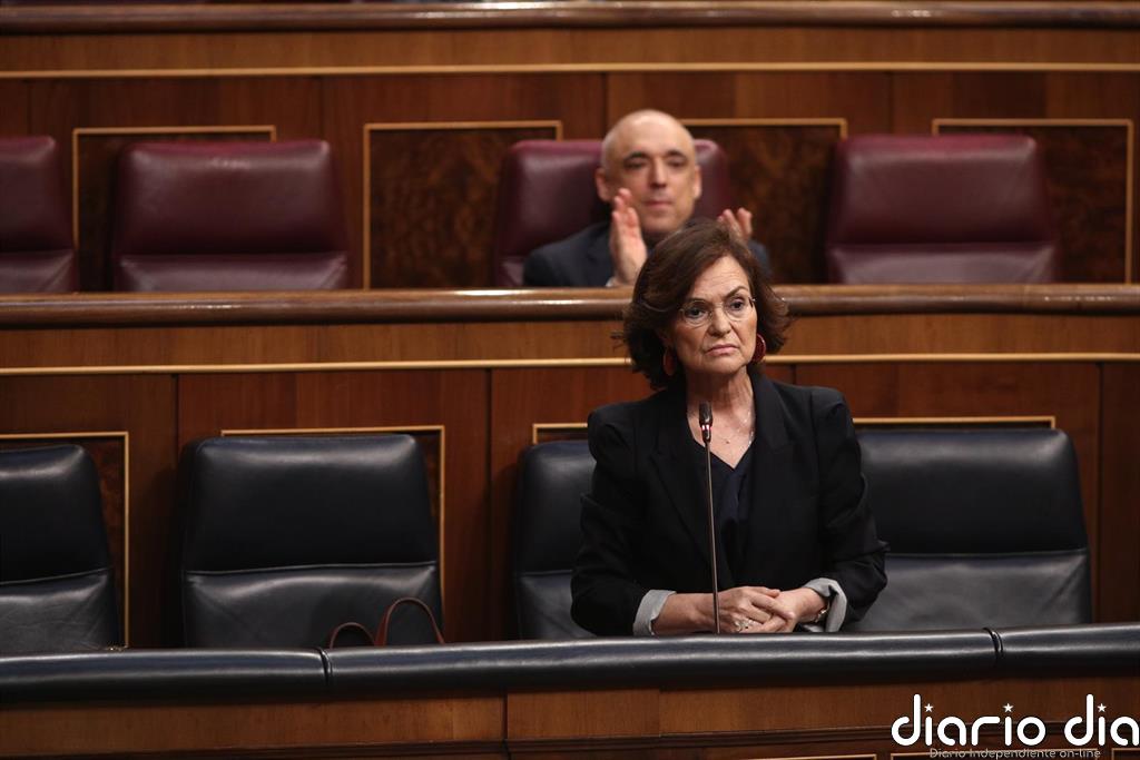 La vicepresidenta del Gobierno, Carmen Calvo, ha asegurado este miércoles que la mesa de diálogo con Cataluña es «la única manera de encontrar una salida» en el marco constitucional y ha confirmado que se convocará en julio. La portavoz del Grupo Popular en el Congreso, Cayetana Álvarez de Toledo, le ha preguntado «a qué precio».