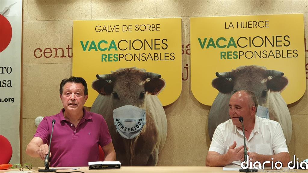 En rueda de prensa, los alcaldes de Gálvez de Sorbe, Javier López, y de La Huerce, Francisco Lorenzo, han señalado que con la imagen de bienvenida de su vaca con mascarilla incorporada, solicitando vacaciones responsables a la Sierra de Pela y el Alto Sorbe, quieren «sacar» a todos los visitantes y vecinos «una sonrisa» y hacer llegar el mensaje: «Pasa un verano seguro, responsable y feliz».