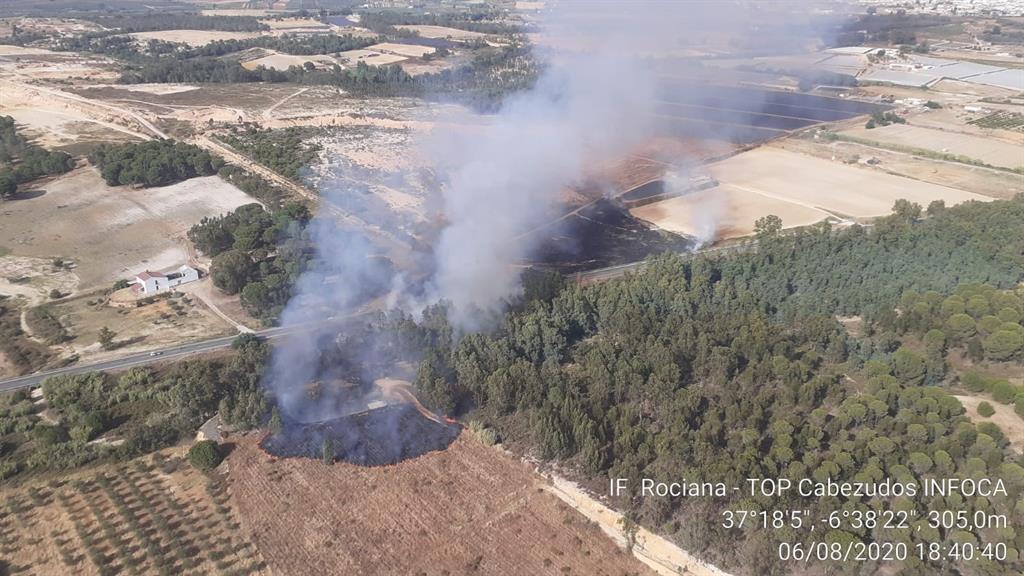 El dispositivo para la prevención y extinción de incendios forestales en Andalucía (Plan Infoca) trabaja desde las 18,10 horas en sofocar el fuego, declarado en el paraje Cañada Navarro de la mencionada localidad onubense.
