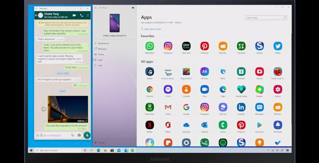 Cuando se inicia una aplicación de Android desde Windows, esta se abre en una página fuera de la app Your Phone, para facilitar así la multitarea a los usuarios. Esta función ya está disponible en móviles Samsung Galaxy desde el miércoles, aunque de forma preliminar.