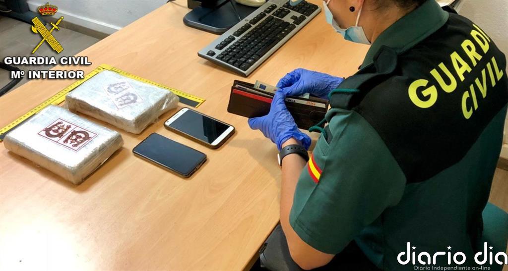 Cuando los agentes se dispusieron a inspeccionar el interior de un coche al que habían dado el alto, localizaron dos paquetes con envoltorios de plástico, que contenían un total de 2,2 kilogramos de cocaína.