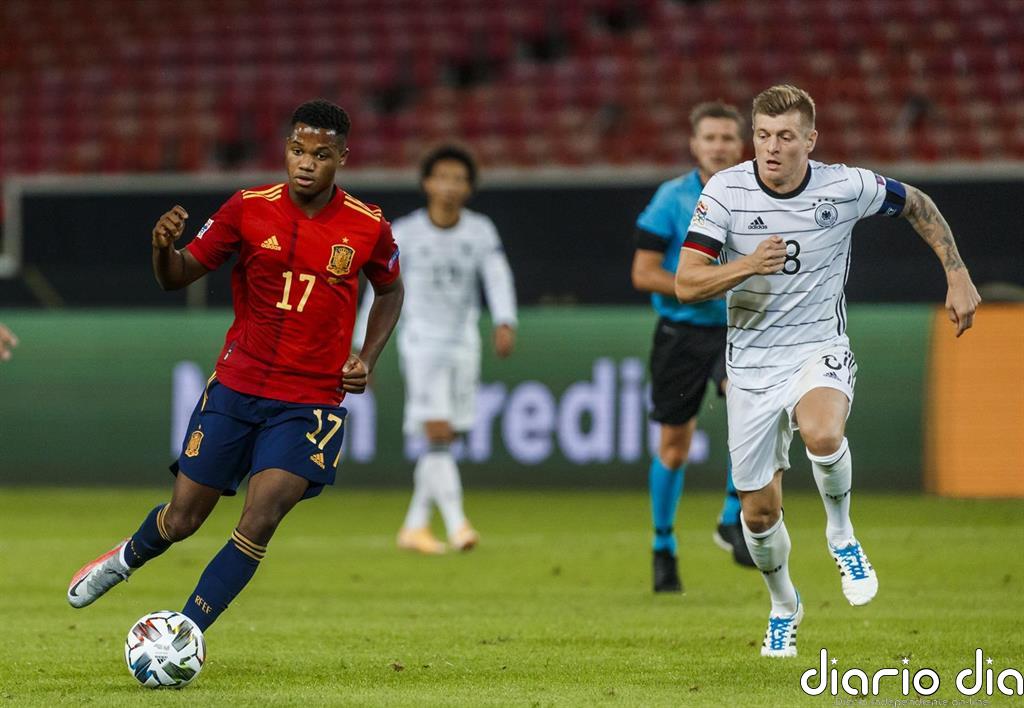 El delantero hispano-guineano Ansu Fati vivió este jueves otra gran noche a nivel personal después de disfrutar de su debut con la selección española de fútbol en el partido ante Alemania, un estreno que ya sonó con fuerza en el 2019 y que significa una etapa más quemada en poco más de un año.