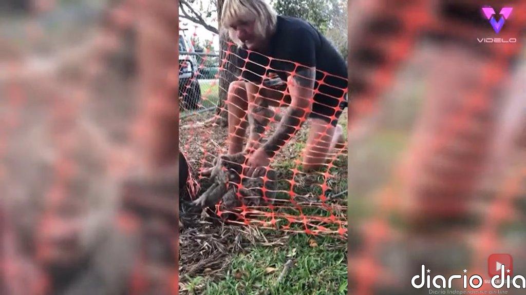 Un trabajador de un santuario salva a una zarigüeya de los incendios forestales