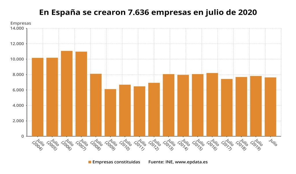 La creación de empresas sube un 13,4% en julio aunque registra una caída del 2,4% en el último año