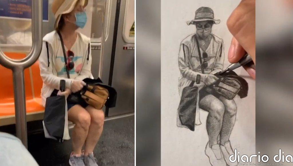 Conoce a Devon Rodríguez, el artista que se ha hecho famoso por pintar retratos de viajeros del metro de Nueva York