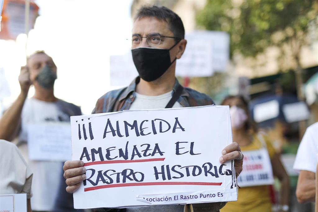 En declaraciones concedidas a los medios de comunicación, Monedero ha considerado que es «un sitio emblemático» de la ciudad y que el Partido Popular, «con la excusa del Covid-19», quiere convertir el Rastro «en un espacio para quienes solamente puedan pagar pisas caros, negocios repetidos y franquicias que ya aburren».