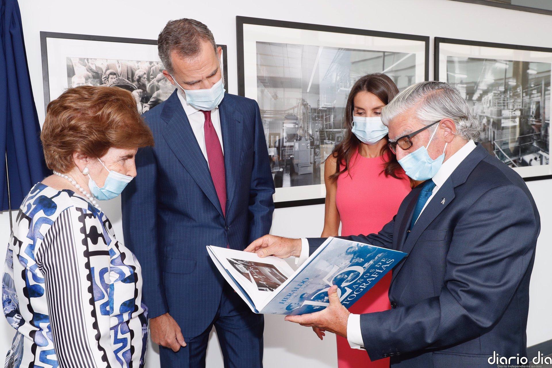 Don Felipe VI y Doña Letizia, han recibido este miércoles el Premio Extraordinario Heraldo 125 aniversario en un evento que han presidido en la rotativa del diario Heraldo de Aragón, el decano de la prensa aragonesa, en Villanueva de Gállego (Zaragoza). El rey ha puesto de relieve el compromiso de este periódico con la libertad y los ciudadanos.