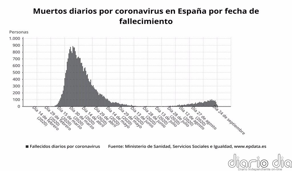 Además, 5.829 personas han fallecido en Cataluña como consecuencia del coronavirus (seis en los últimos siete días); en Ceuta se han contabilizado 10 fallecidos desde el comienzo de la pandemia (una en la última semana); en la Comunidad Valenciana 1.583 (24 en los últimos siete días); en Extremadura 564 (19 en una semana); en Galicia 726 (21 en los últimos siete días); en Madrid 9.213 (159 en los últimos siete días); en Melilla cuatro; en Murcia 201 (una en los últimos siete días); en Navarra 563 (10 en los últimos siete días); en el País Vasco 1.838 (30 en los últimos siete días); y en La Rioja 409 (16 en los últimos siete días).
