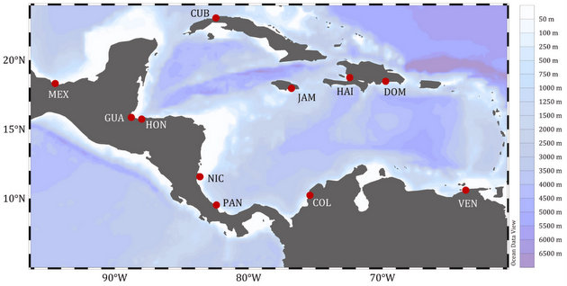 Especialistas de la Red de Investigación Marino-Costera (Remarco), apoyados por la Agencia Internacional de Energía Atómica, tomaron muestras en puntos específicos de las costas de Colombia, Cuba, República Dominicana, Guatemala, Haití, Honduras, Jamaica, México, Nicaragua, Panamá y Venezuela.