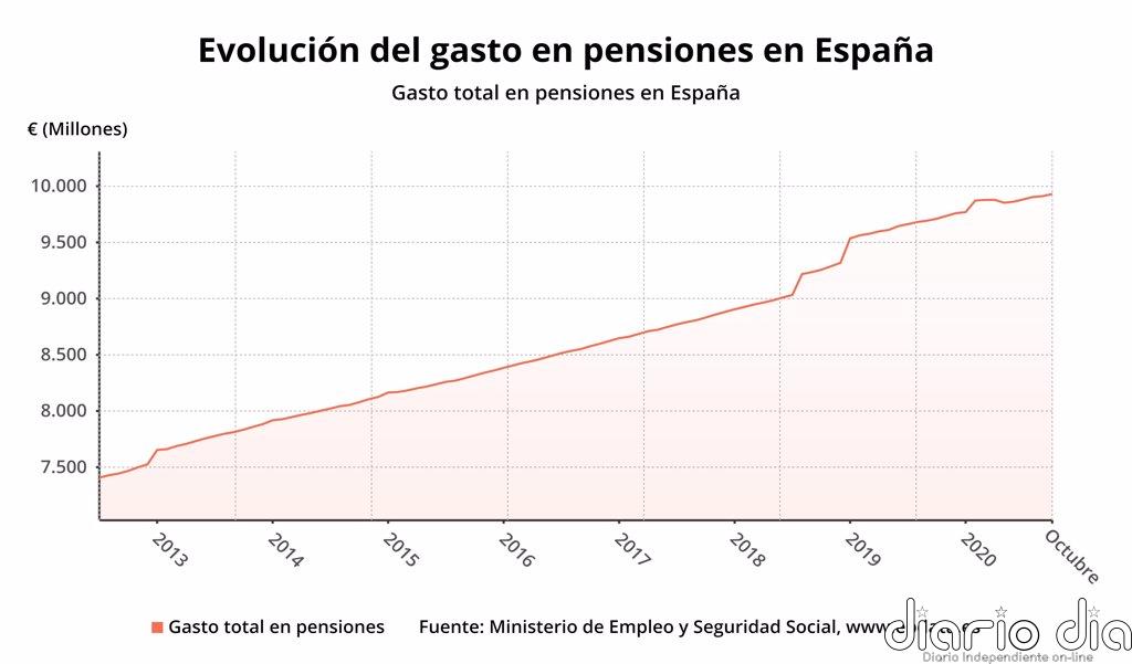 El gasto en pensiones sube un 2,2% en octubre, hasta la cifra récord de 9.930 millones