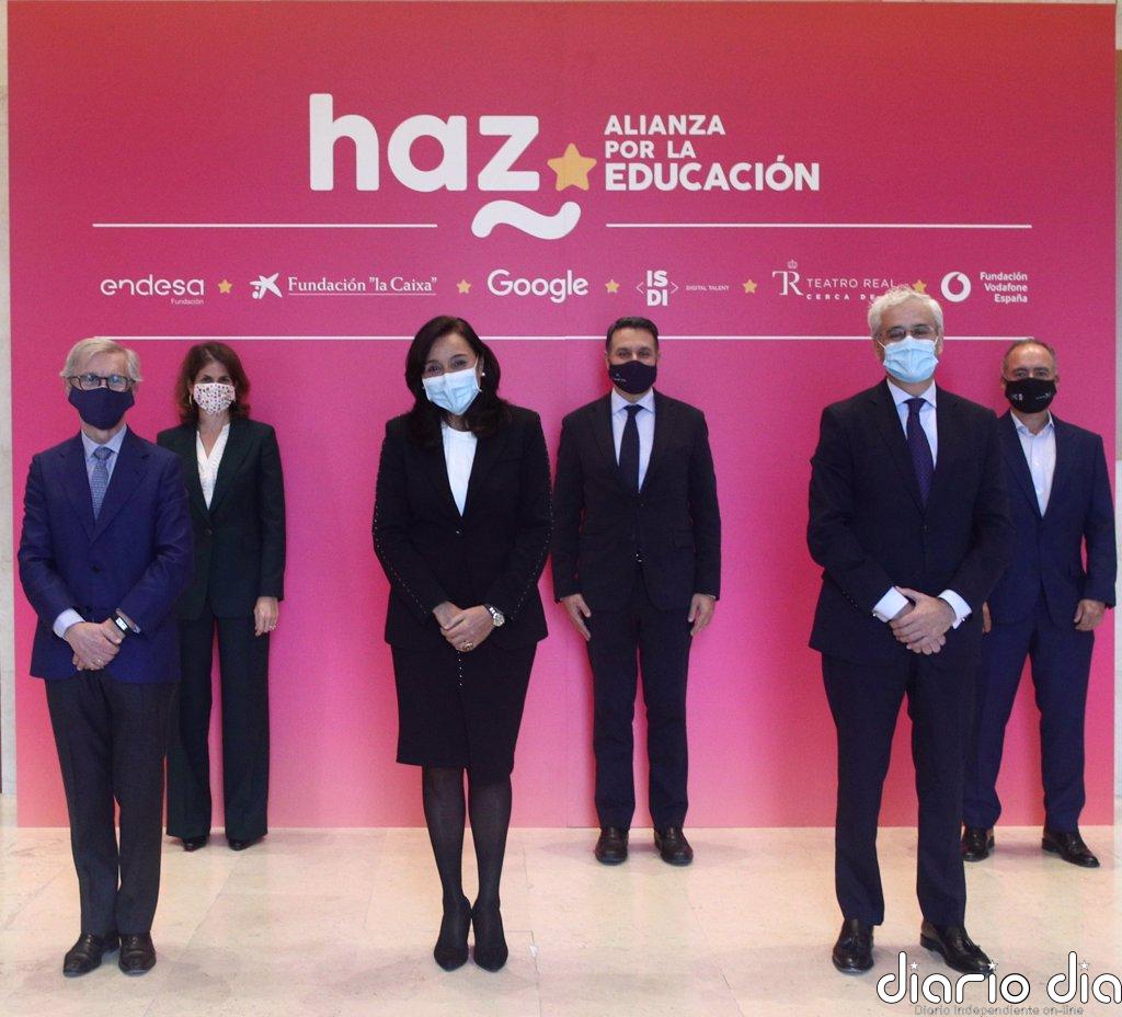 La ministra de Educación y FP, Isabel Celaá, ha celebrado este jueves que grandes empresas formen alianzas para implicarse en la educación en España, después de asistir a la inauguración de ‘HAZ, Alianza por la Educación’, una iniciativa conjunta promovida por Fundación ‘la Caixa’, Fundación Endesa, Google, ISDI, Teatro Real y Fundación Vodafone que nace con el compromiso de transformar la sociedad a través de la educación y de la colaboración público-privada.