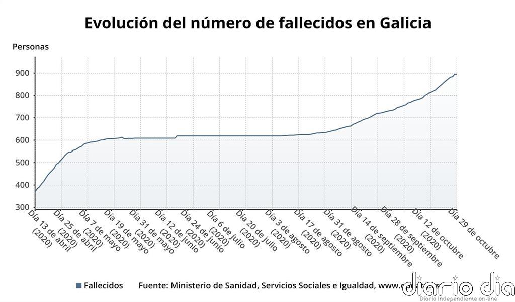 Galicia ha superado este martes las 900 muertes de personas diagnosticadas con coronavirus –ha alcanzado las 902– después de que las autoridades sanitarias hayan notificado el fallecimiento de 13 fallecidos, la cifra más alta comunicada en una jornada en la Comunidad en la segunda ola de la pandemia de la covid-19.