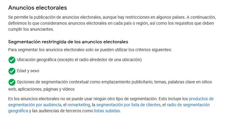 También se incluyen anuncios con un referéndum para votar, un grupo de campañas de referéndum, o un llamamiento al voto relacionado con un referéndum nacional o un referéndum de soberanía estatal o provincial”.