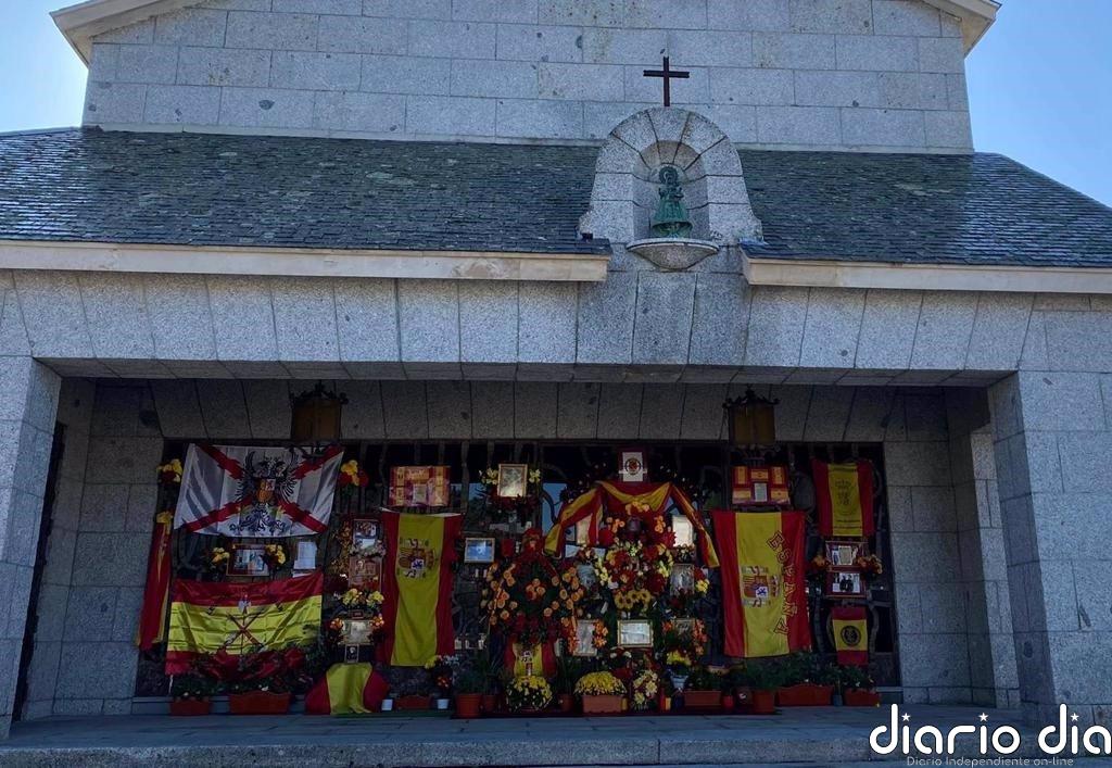 El panteón de Franco en Mingorrubio, decorado con banderas de España y flores por el Día de Todos los Santos