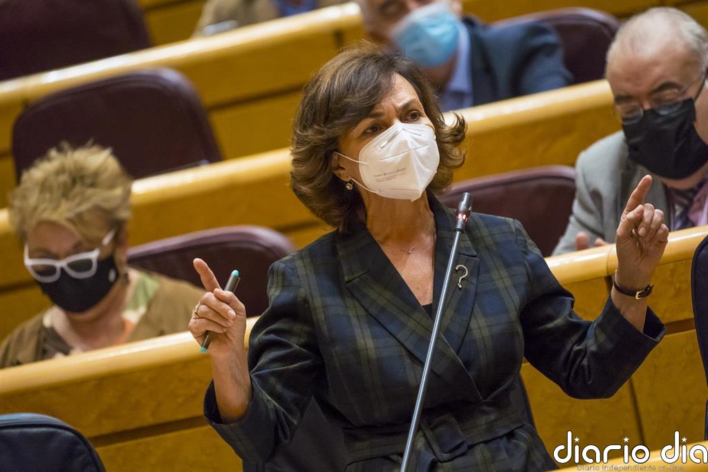 La vicepresidenta primera del Gobierno, Carmen Calvo, ha afirmado que la bajada del IVA de las mascarillas «es planteable», pero ha subrayado que «el debate no puede ser este».