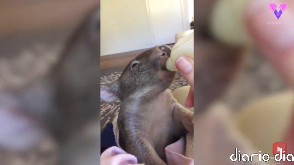 La wombat se alimenta con un biberón de leche cada de fórmula cada cuatro horas aproximadamente.