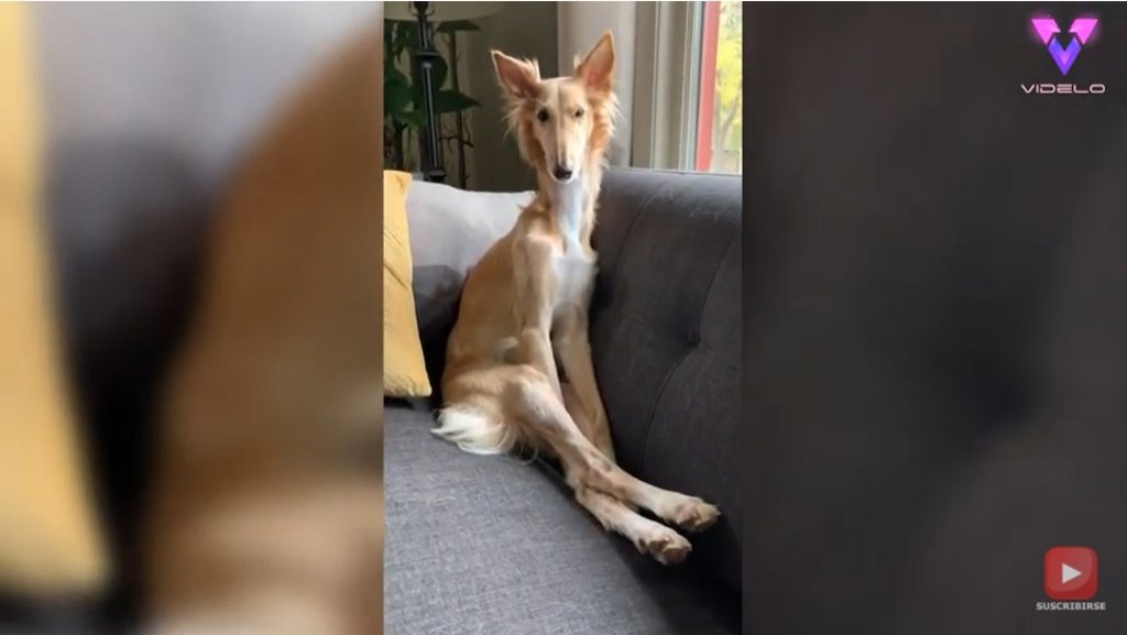 Esta Silken Windhound de un año y medio, de Wisconsin, consigue hacer reír a su dueña con la extraña manera que tiene de sentarse en el sofá.