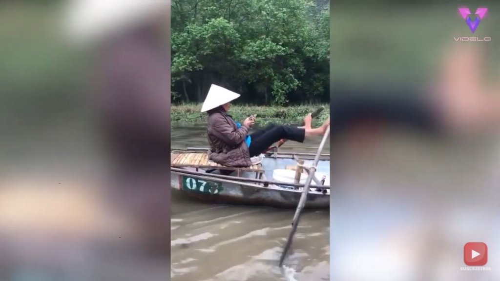Julia se encontraba de vacaciones en la localidad de Hanoi, en Vietman, el pasado 13 de mayo, cuando se dio cuenta de que una mujer estaba remando con los pies tal y como se puede ver en este vídeo.
