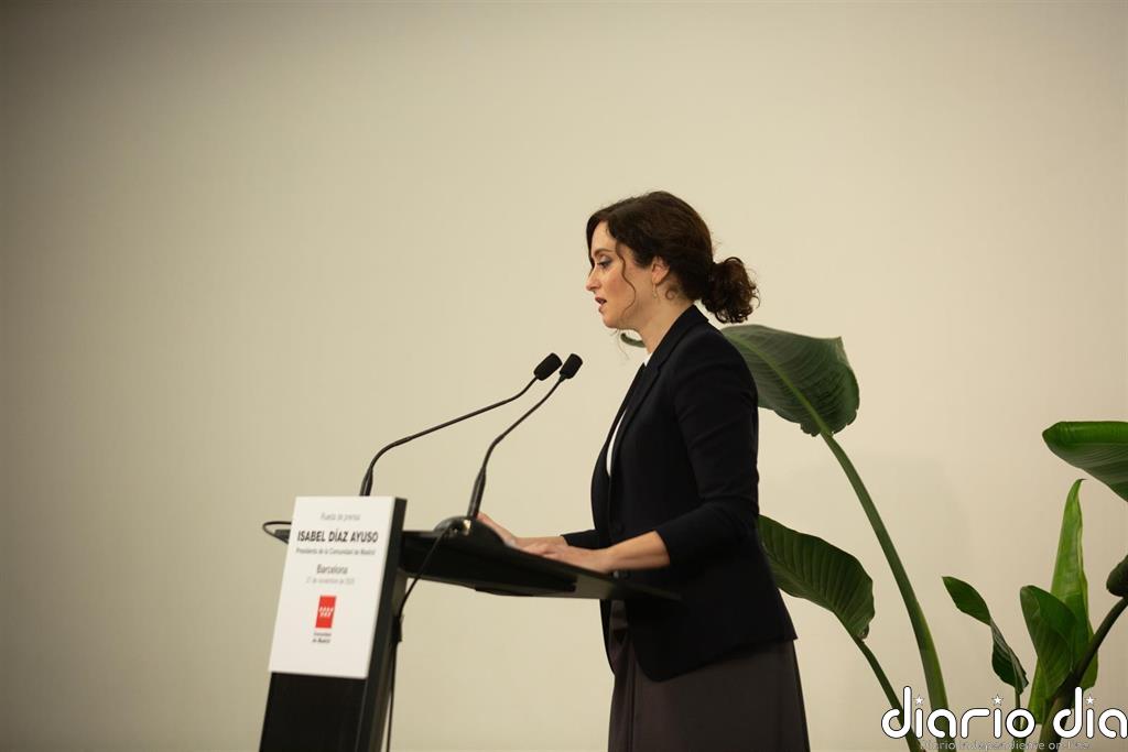 Ayuso ha explicado que en su visita a Barcelona entre el jueves y este viernes se ha reunido con entidades como S’Ha Acabat, Societat Civil Catalana (SCC), la Asamblea por la Escuela Bilingüe y con empresarios de la restauración, la hostelería y con representantes de la escuela concertada para «hablar con la sociedad civil catalana».