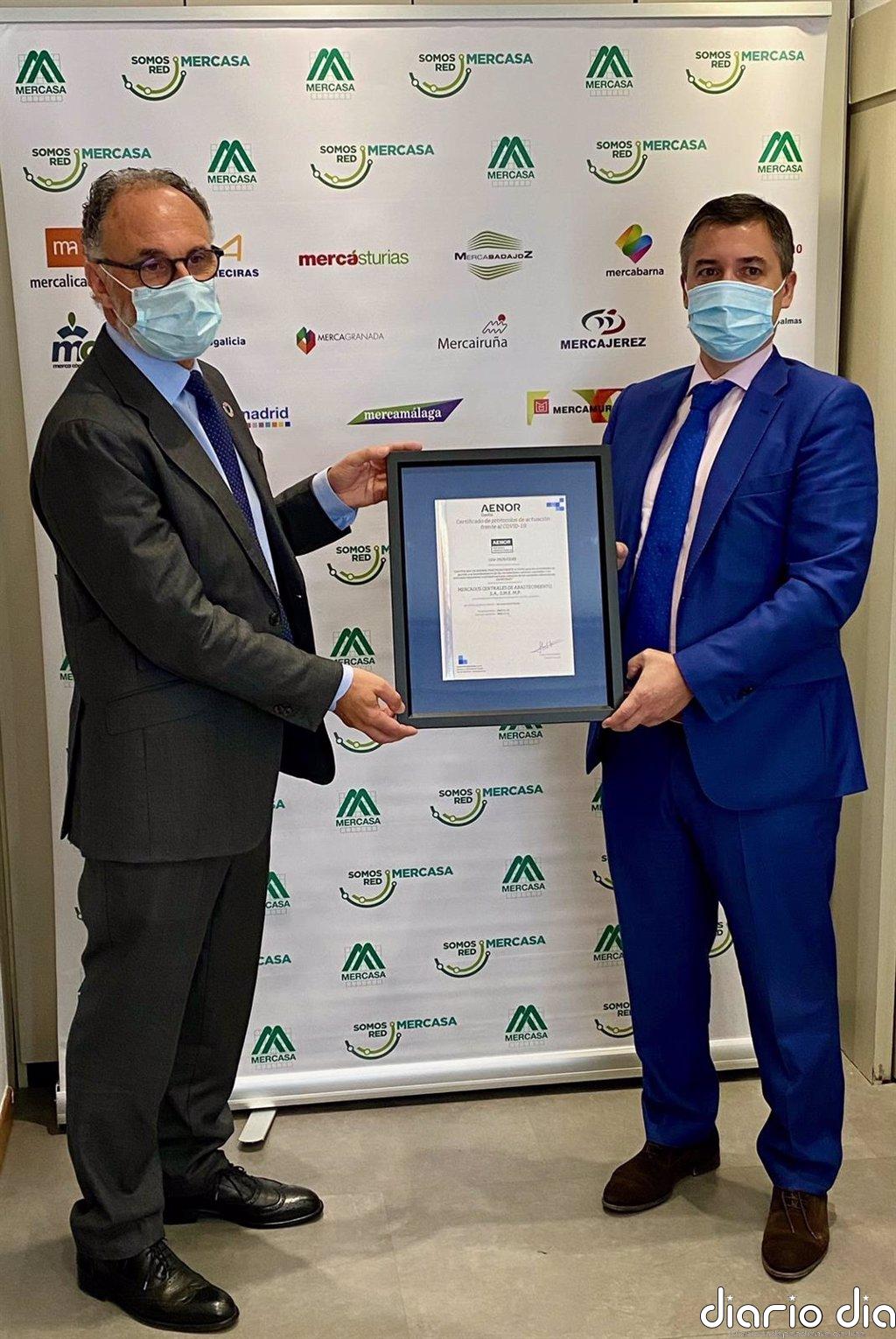 El presidente de Mercasa, José Ramón Sempere, ha recibido este lunes el certificado concedido por Aenor en un acto celebrado en la sede de la empresa, en el que ha participado el director de Ventas de AENOR, Nicolás Henríquez.