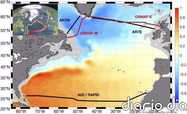 En este estudio, se utiliza una compilación de secciones hidrográficas repetidas en el Atlántico norte subtropical y subpolar, que abarcan casi 30 años, junto con datos de altimetría satelital, observaciones de matrices en toda la cuenca y datos de modelos de asimilación.