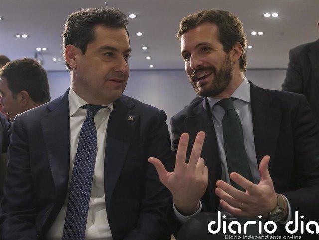 El presidente de la Junta de Andalucía, Juanma Moreno, junto al presidente nacional del PP, Pablo Casado. En Sevilla, a 30 de enero de 2020. – María José López – agencia – Archivo