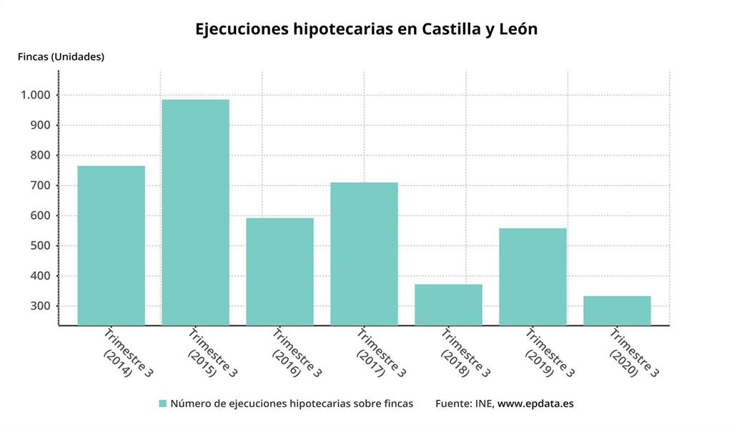 Castilla y León se situó como la octava comunidad autónoma con mayor número de ejecuciones hipotecarias sobre viviendas en el tercer trimestre de 2020, con un total de 175 casos (63 a personas físicas y 112 a personas jurídicas), frente a los 33 del trimestre anterior, según los datos aportados este jueves por el Instituto Nacional de Estadística (INE) y recogidos por agencia.