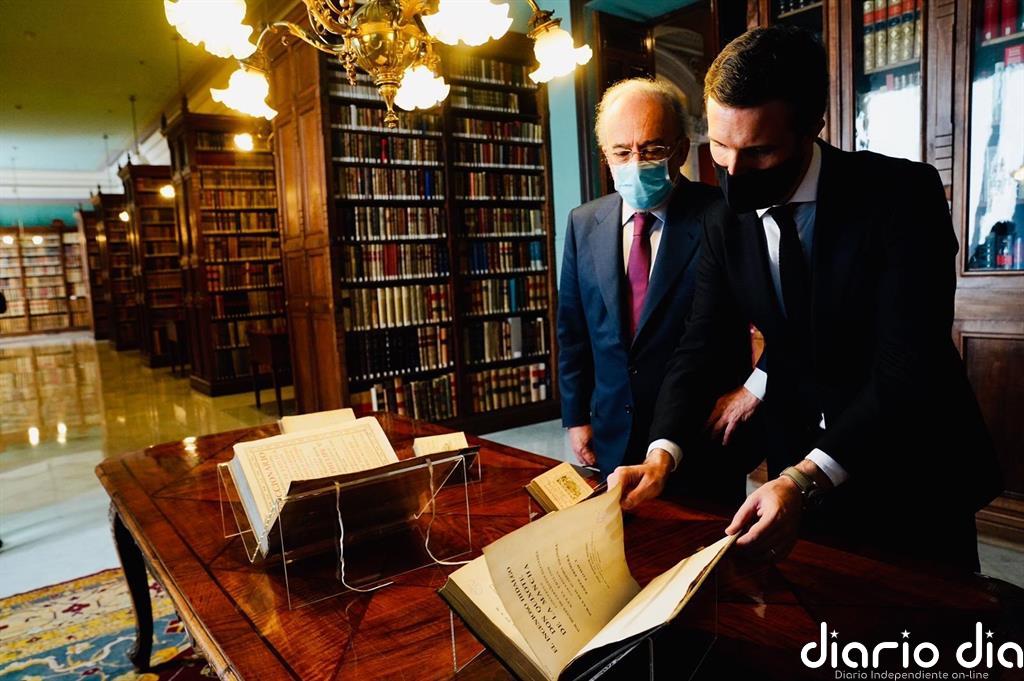 Casado defiende en la RAE el español como lengua vehicular y dice que comparten «la preocupación» por la ‘Ley Celaá’