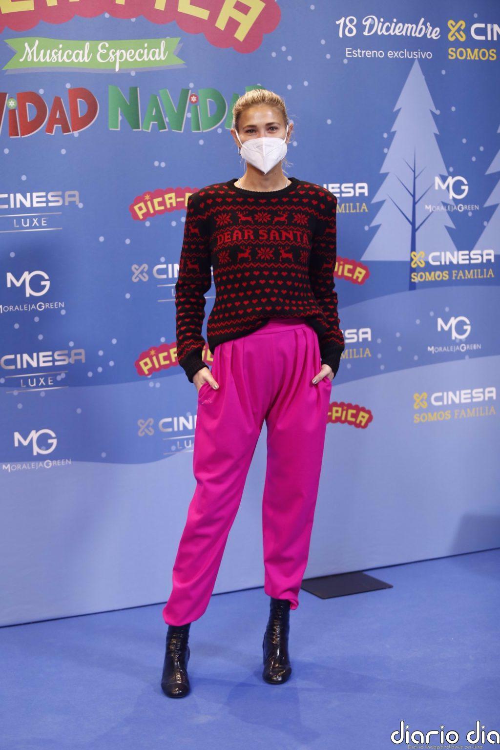 Con un look de lo más invernal y navideño, la mujer de Simeone ha lucido su mejor sonrisa y es que Carla optó por un pantalón jogger fucsia, un jersey con estampado nacideño rojo y unos botines de tacón que realzaban su espectacular figura física.