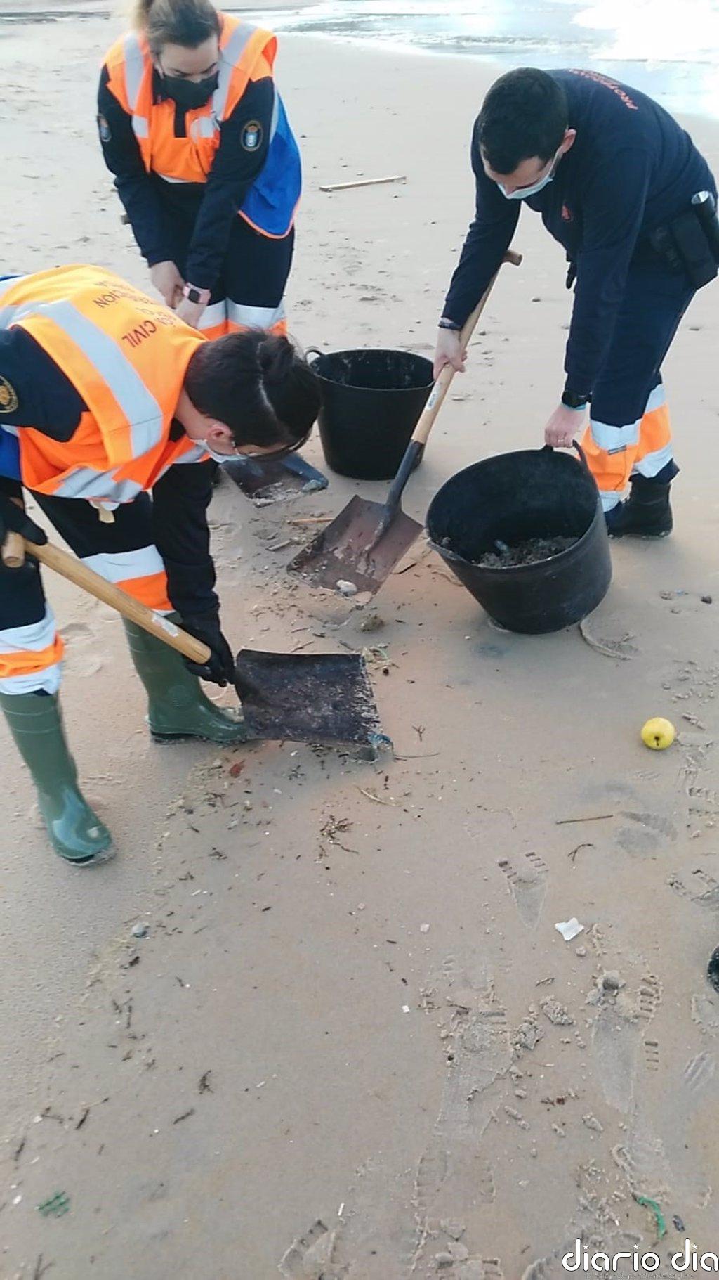 Efectivos de Protección Civil de Ferrol se han desplegado por los arenales para iniciar su recolección, con el objetivo de evitar que puedan afectar a alguna persona o mascota.