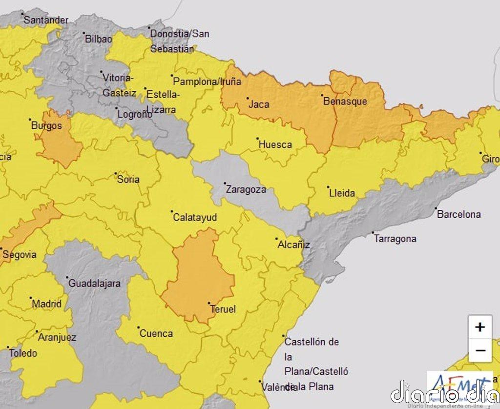 Según un parte de la Agencia Estatal de Meteorología (AEMET), se ha emitido un aviso naranja por temperaturas mínimas en el Pirineo oscense, así como en las zonas de Albarracín y el Jiloca, en la provincia de Teruel, entre las 00.00 y 09.00 horas.
