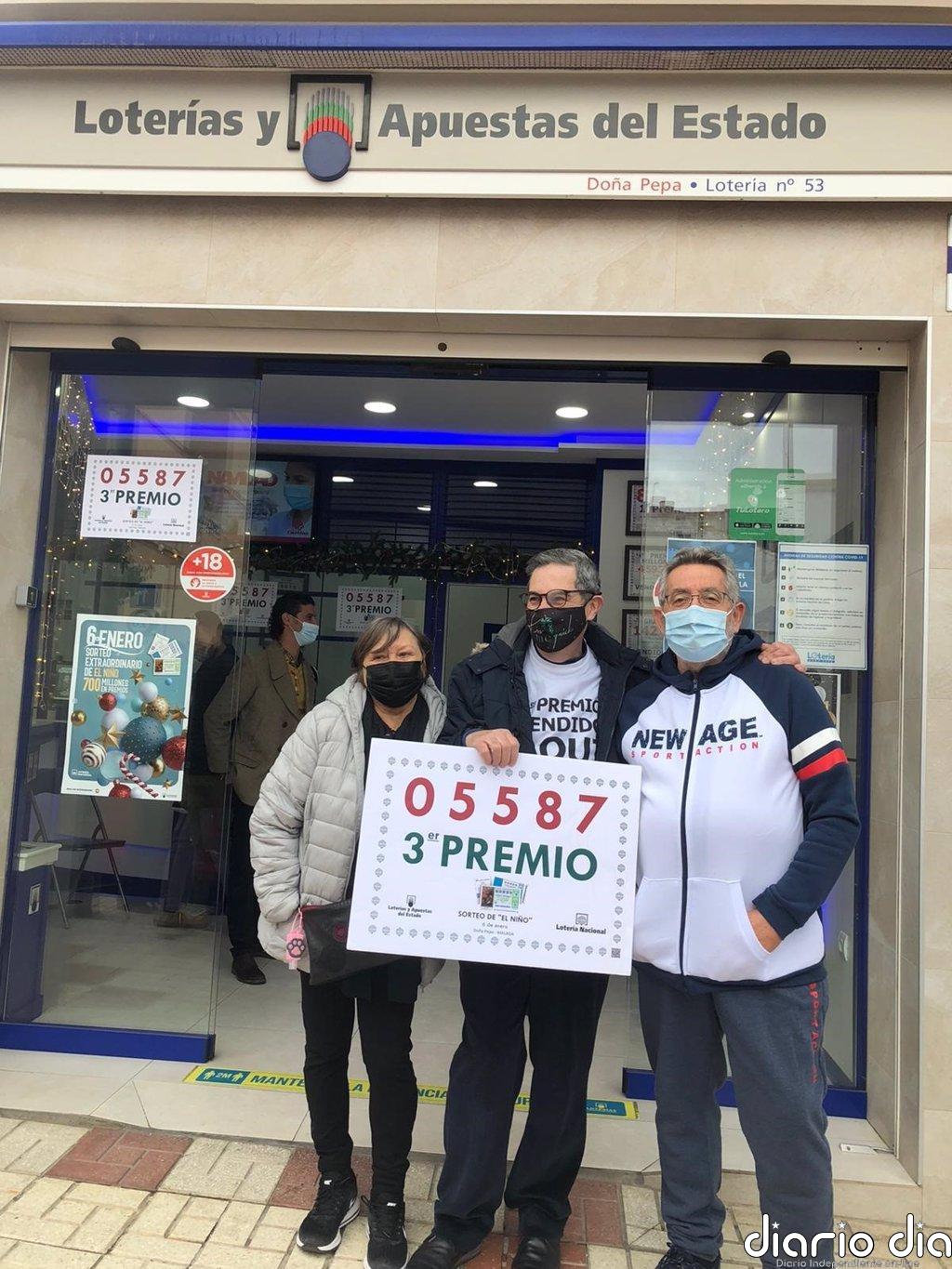 El tercer premio del Sorteo Extraordinario de ‘El Niño’ se ha dejado sentir en varios municipios de la provincia de Málaga, entre ellos, la capital, Fuengirola, Rincón de la Victoria y Cómpeta.