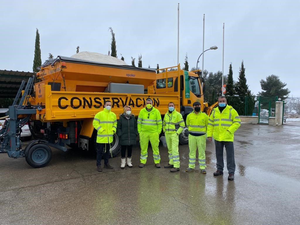 Tanto el personal propio de la Delegación Territorial encargado de la Conservación viaria como el personal de los cuatro centro de conservación integral, se afanan desde el pasado martes con la extensión de fundentes preventivos ante la inminente llegada de las nevadas, y a partir de la noche del pasado miércoles , momento desde el que las máquinas quitanieves se concentran de forma ininterrumpida en retirar la nieve caída en las distintas carreteras.
