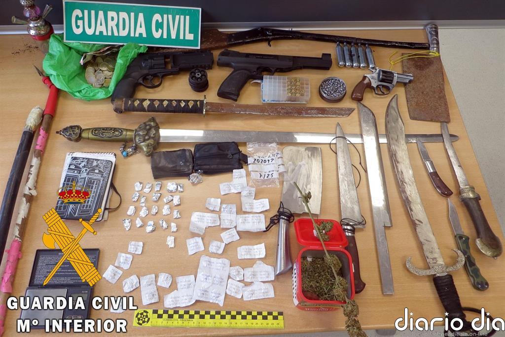 La Guardia Civil de Almería ha desmantelado un activo punto de venta de drogas decomisando sustancias estupefacientes, numerosas armas, gran cantidad de dinero en efectivo y arrestando a una persona, según informa la institución.