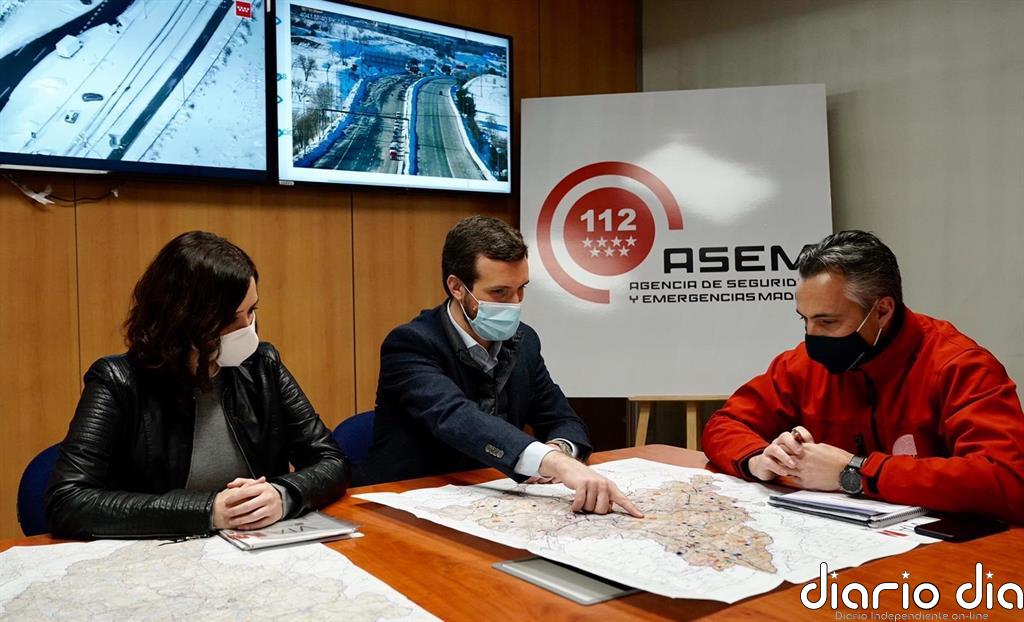 El líder del PP, Pablo Casado, ha reivindicado la «acertada» gestión de la presidenta de la Comunidad de Madrid, Isabel Díaz Ayuso, durante el temporal de nieve y ha destacado también la labor realizada por la Administración General del Estado, personificándolo en la ministra de Defensa, Margarita Robles, a la que ha agradecido la actuación realizada por la Unidad Militar de Emergencias (UME).