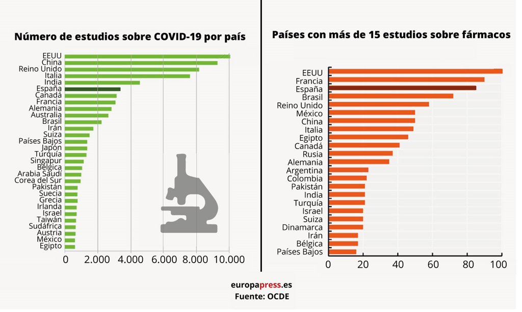 España, tercer país en estudios clínicos con fármacos frente al COVID y sexto en publicaciones, según la OCDE