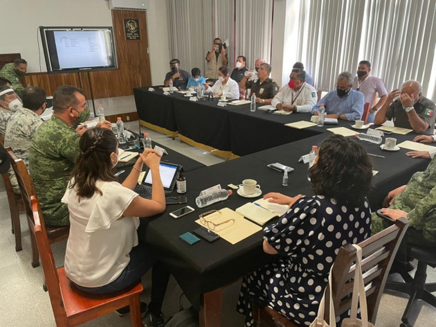 Una reunión de coordinación de Protección Civil de México para tomar medidas ante la posible llegada de la caravana originada en Honduras. Foto: Cortesía de Protección Civil México