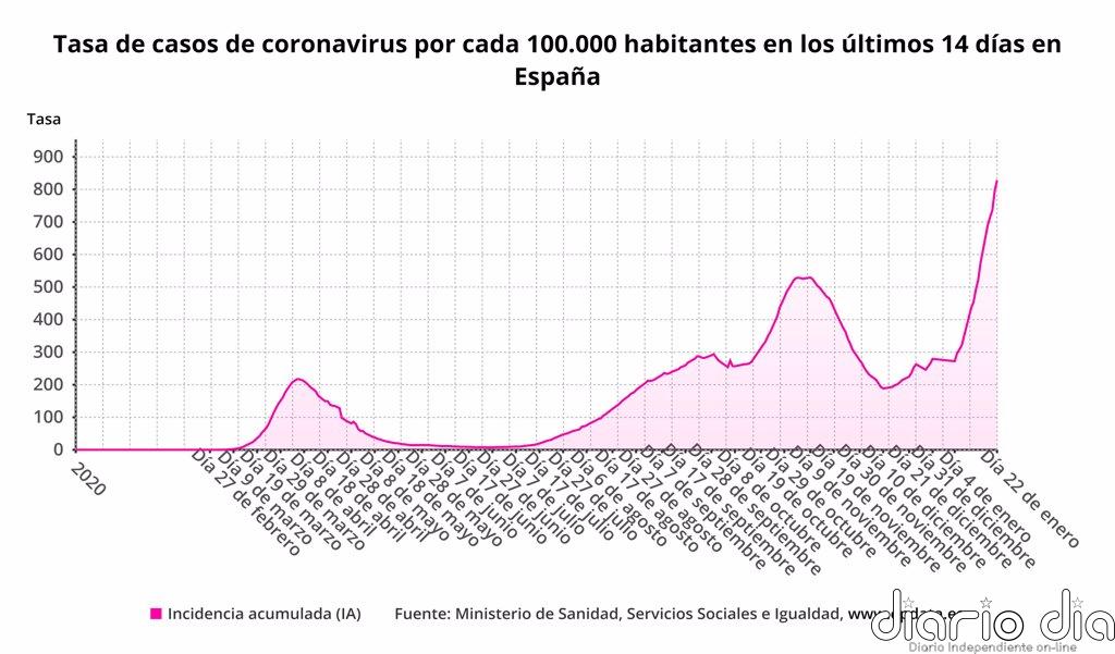 Asimismo, la incidencia media actual de contagios en España en los últimos 14 días sigue incrementándose día tras día, situándose en los 828,57 casos por cada 100.000 habitantes, en comparación con los 795,65 notificado el jueves por el departamento que dirige Salvador Illa.