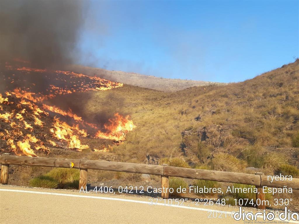 La Guardia Civil ha evacuado por prevención a una persona de un cortijo en Castro de los Filabres mientras que desde el servicio unificado de emergencias 112 Andalucía han señalado que los accesos a la localidad se han cortado para evitar que los vecinos acudan a sus huertos y cortijos hasta que el incendio esté extinguido.