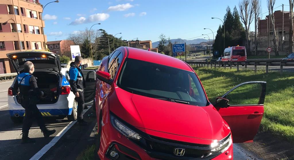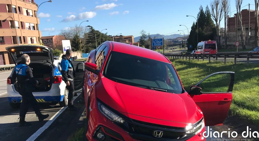 Una mujer de mediana edad ha sido detenida este miércoles por agentes locales tras intentar agredirlos después de estrellar su coche contra el quitamiedos de la entrada de la antigua autopista por la glorieta de la Cruz Roja.