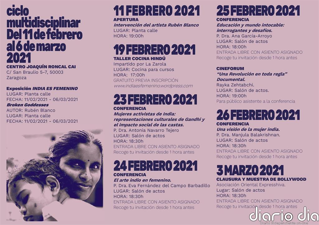 El Centro Joaquín Roncal CAI de Zaragoza acogerá a partir del próximo jueves, 11 de febrero, y hasta el 6 de marzo, el ciclo multidisciplinar ‘India es femenino’, un enfoque poliédrico que pretende reflexionar sobre el Objetivo de Desarrollo Sostenible (ODS) número 5, de la igualdad entre los géneros, a través de la situación de la mujer en India.