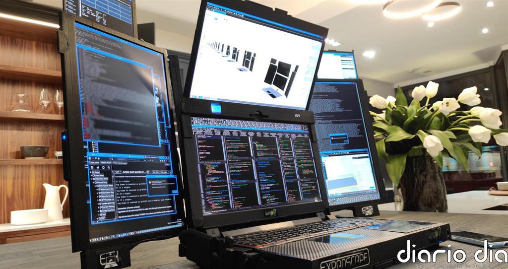 Así es Aurora 7, un ordenador portátil con 7 pantallas