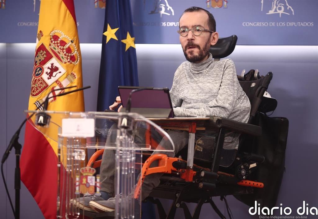 El portavoz de Unidas Podemos en el Congreso, Pablo Echenique, ha salido al paso de las críticas al vicepresidente segundo, Pablo Iglesias, por decir que no hay «plena normalidad democrática» por la situación de los líderes independentistas catalanas al ironizar de que puede dar las gracias porque solo le haya espiado «las cloacas» del Estado en lugar de «envenenarle con polonio».