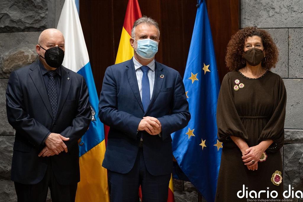 El presidente de Canarias, Ángel Víctor Torres, recibió este miércoles, en la sede de Presidencia del Gobierno de Santa Cruz de Tenerife, a una delegación del Club Deportivo Tenerife encabezada por su presidente, Miguel Concepción, y la secretaria general de la Fundación, Milagros Luis Brito y les confirmó la participación del Gobierno autonómico en el Comité de Honor del Centenario del CD Tenerife, que se cumple en 2022.