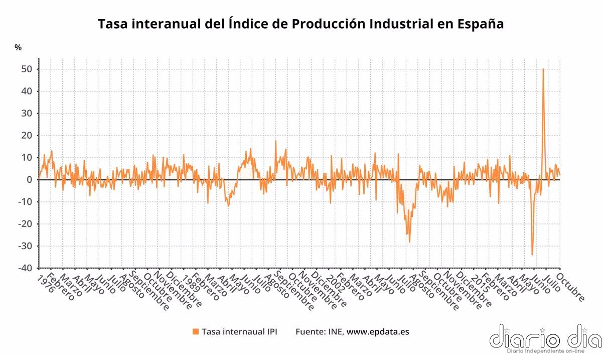 Aunque el crecimiento interanual de octubre se moderó con respecto al de septiembre, la producción industrial encadena ya seis meses consecutivos de tasas positivas.