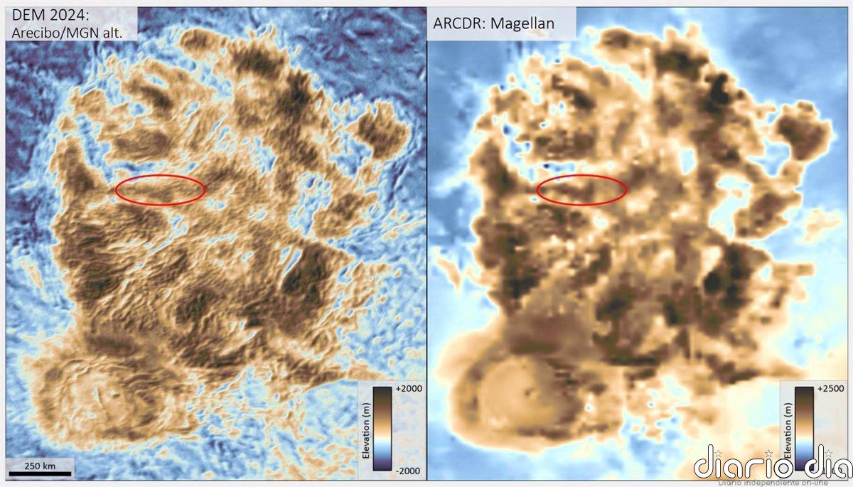Así, el equipo de la misión ha buscado más detalles en los mapas elaborados con la sonda espacial Magallanes, que cartografió la topografía de la zona desde la órbita de Venus con imágenes de radar y altimetría entre 1990 y 1994. En este marco, los científicos aplicaron nuevas técnicas para analizar los datos del altímetro de radar. Después, complementaron estos datos con imágenes de radar tomadas en tres ocasiones desde el antiguo Observatorio de Arecibo en Puerto Rico y utilizaron modelos informáticos de visión artificial para examinar los datos y completar los vacíos de información a nuevas escalas (de menos de 0,6 millas o 1 kilómetro).