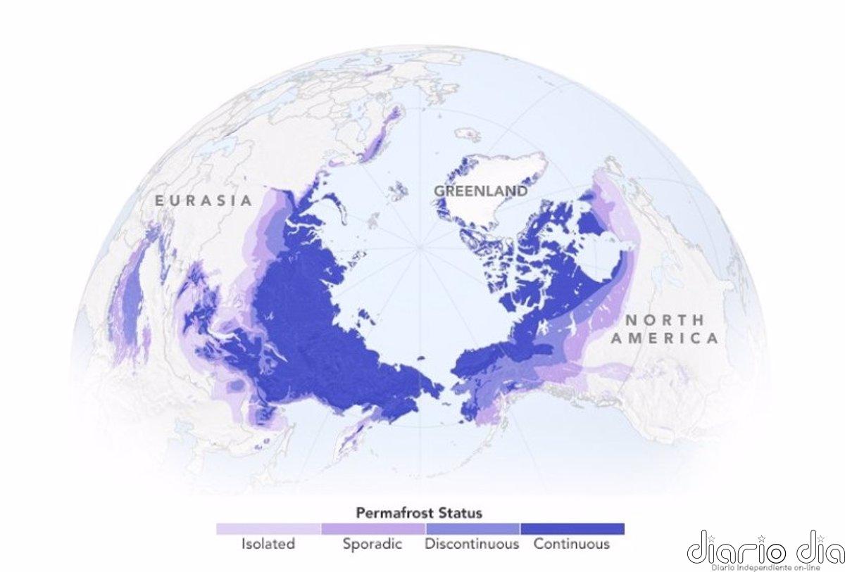 Estas regiones de permafrost que rodean el Ártico desde Alaska hasta Canadá y Siberia almacenan el doble de carbono del que reside actualmente en la atmósfera (cientos de miles de millones de toneladas) y la mayor parte ha estado enterrado durante siglos.