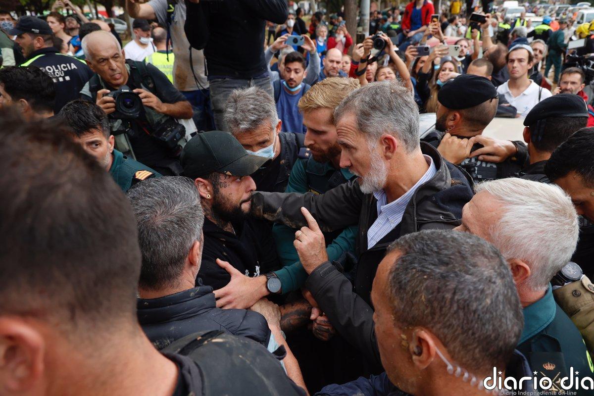 Tanto al rey como al jefe del Consell se les ha visto con manchas de barro en la cara y en la ropa. Se han escuchado gritos de «asesinos», «fuera», «ayuda», «Mazón dimisión», «Pedro Sánchez dimisión» o «dónde está Pedro Sánchez».